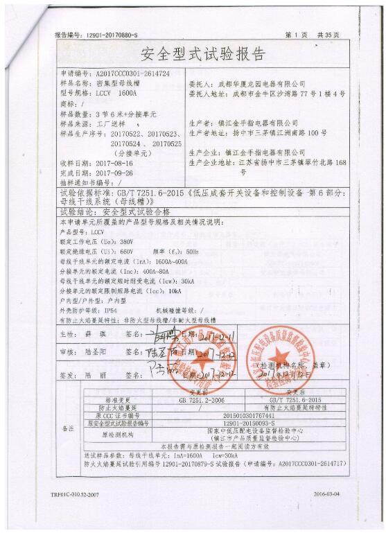 LCCV 密集型母線槽(1600A)試驗(yàn)報(bào)告